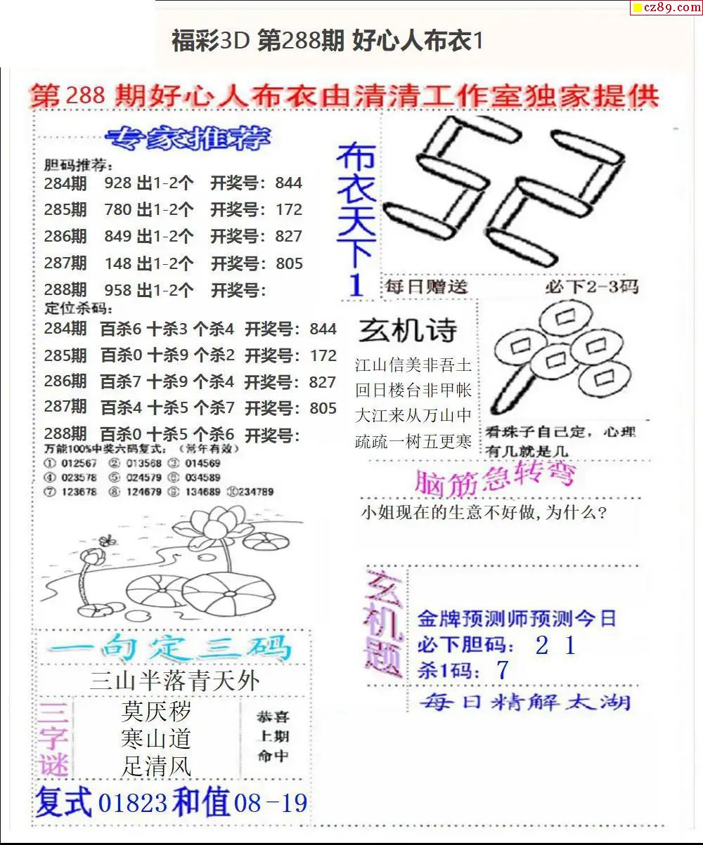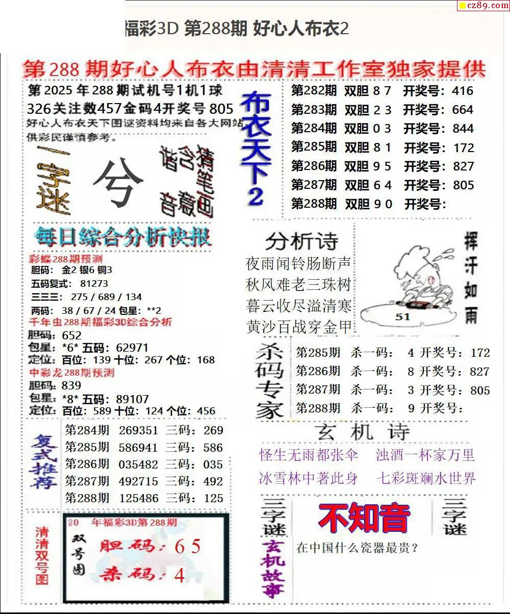 好心布衣2025288期3d图谜